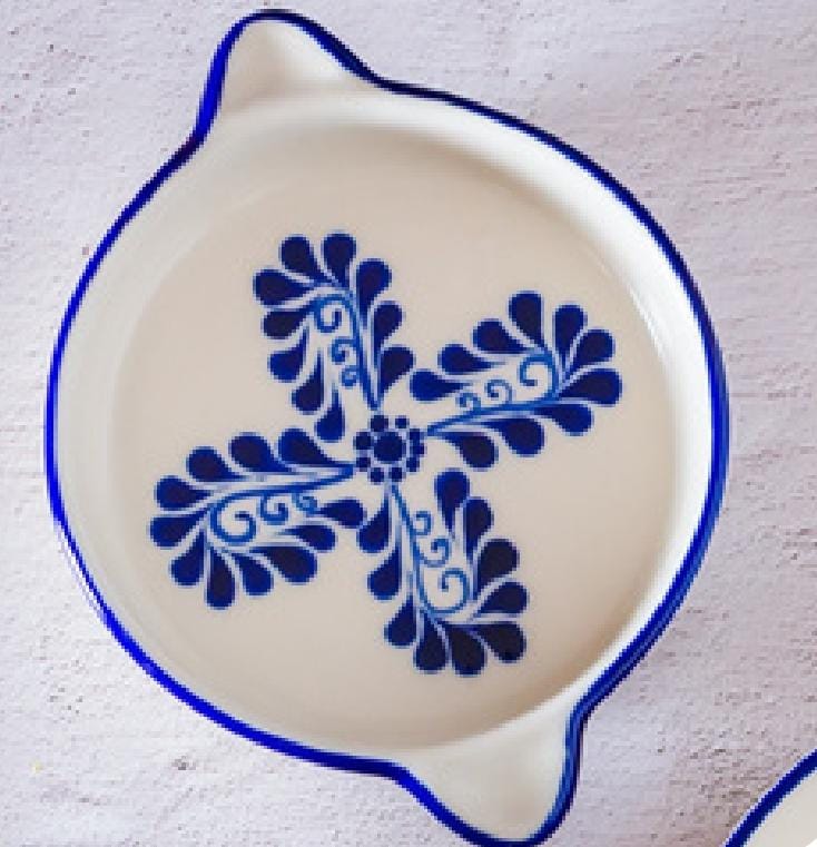 Charola de cerámica alta temperatura modelo tradicional pintada a mano, con asa, medida 16 cm de diámetro.
