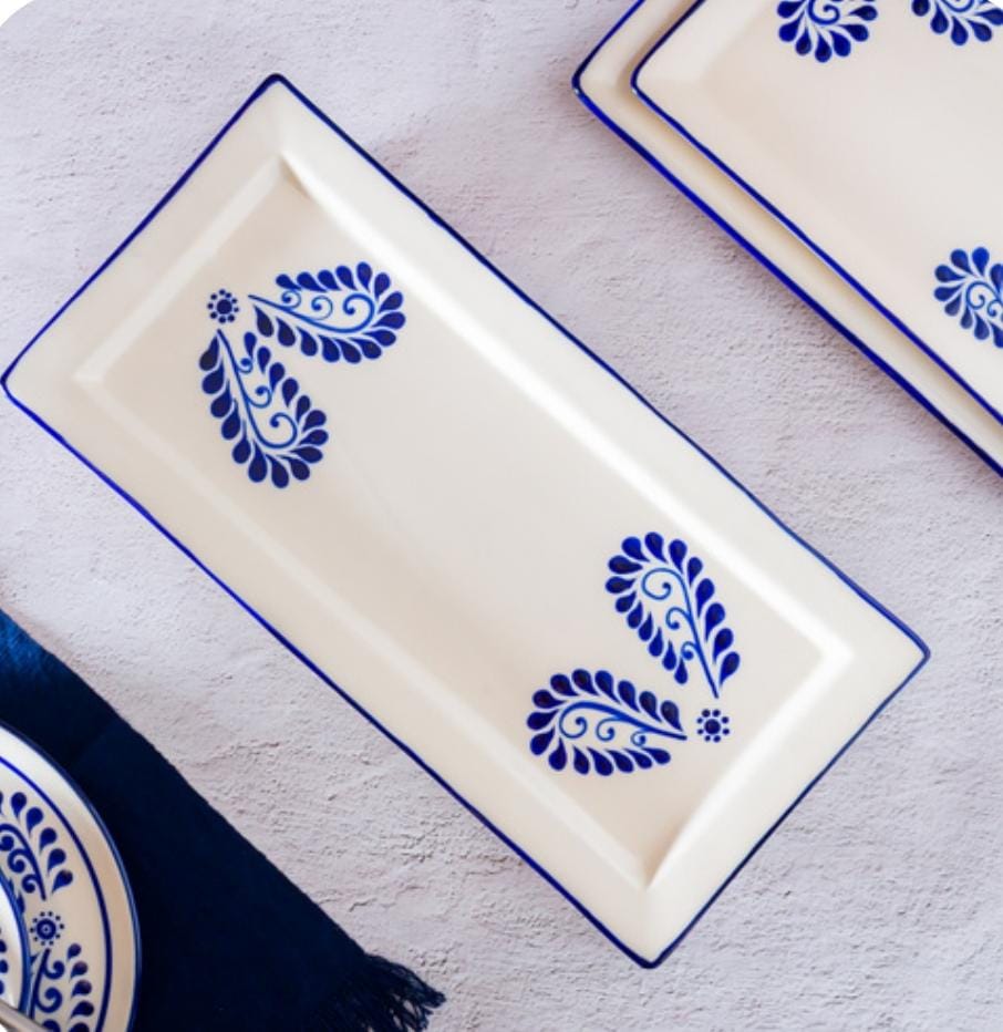 Charola de cerámica alta temperatura modelo tradicional pintada a mano con escalón, medida 46×22 cm.
