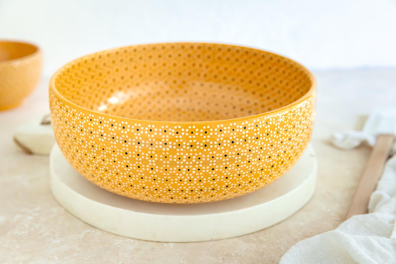 Ensaladera de barro capuleado un solo tono, libre de plomo, medida 24 cm de diámetro.