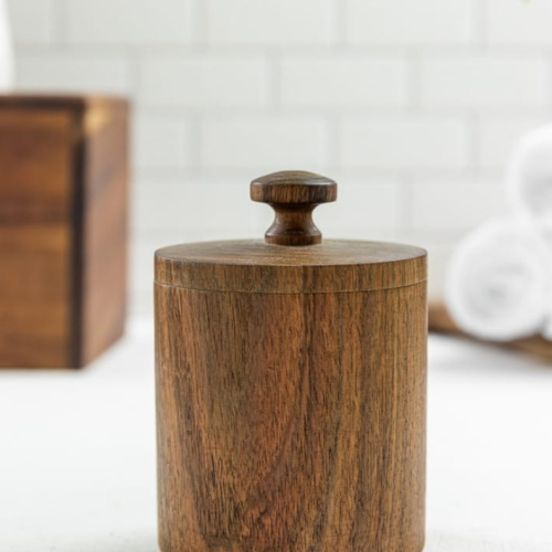 Frasco multiusos de madera de tzalam, medida 7 cm de diámetro x 7 cm de alto.