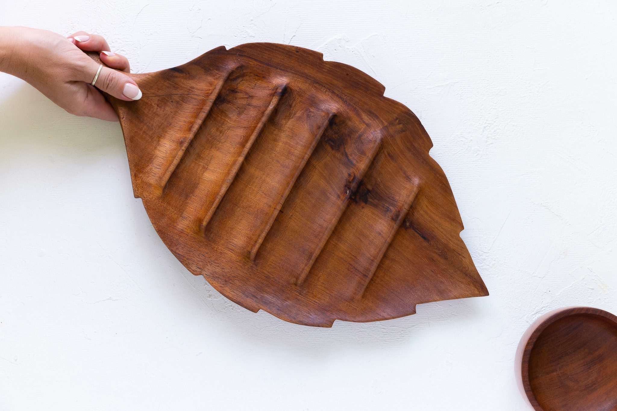 Hoja de madera de tzalam, tallada a mano, medida 43×24 cm.