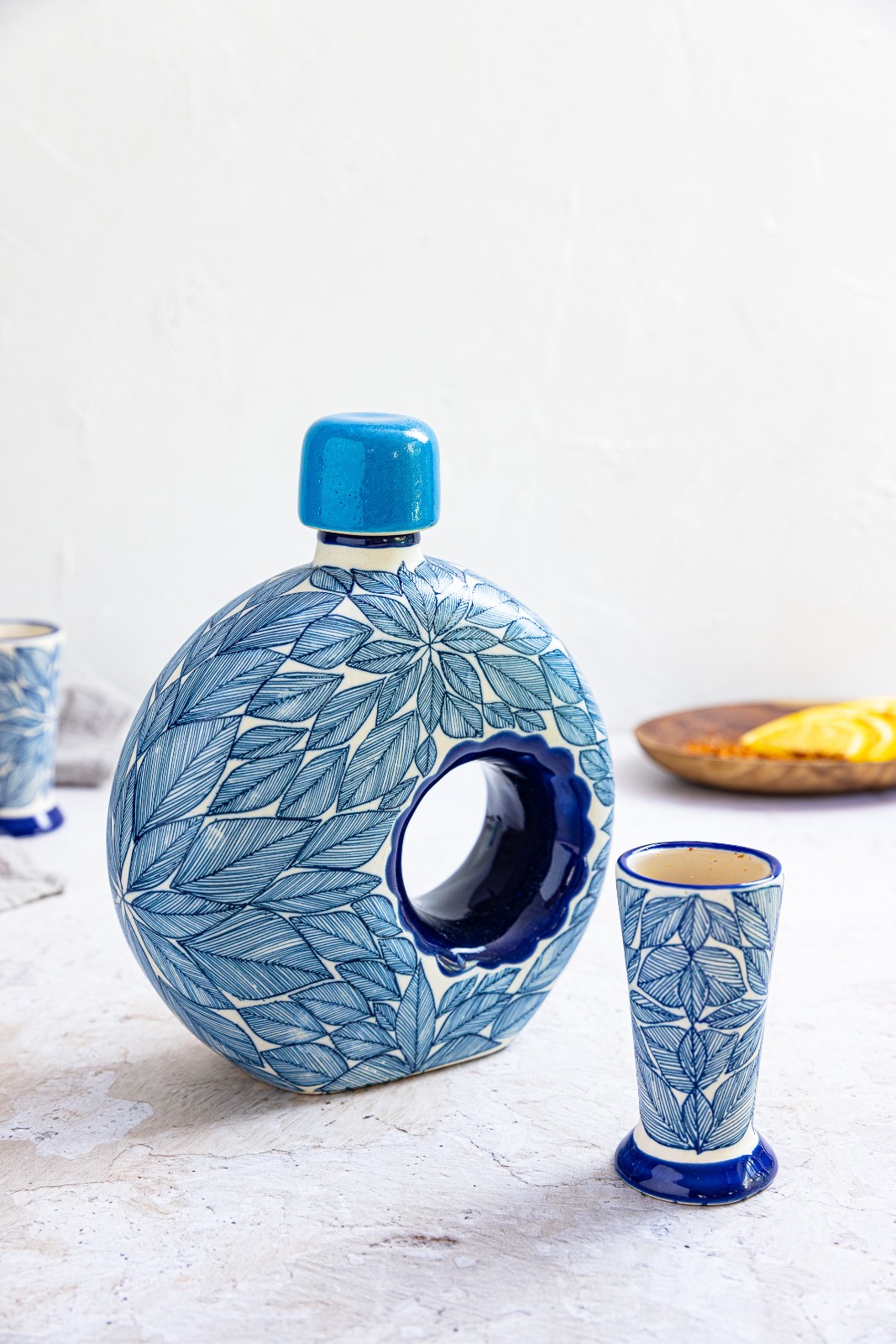 Licorera de cerámica alta temperatura pintada a mano, modelo agave capacidad 700 ml.