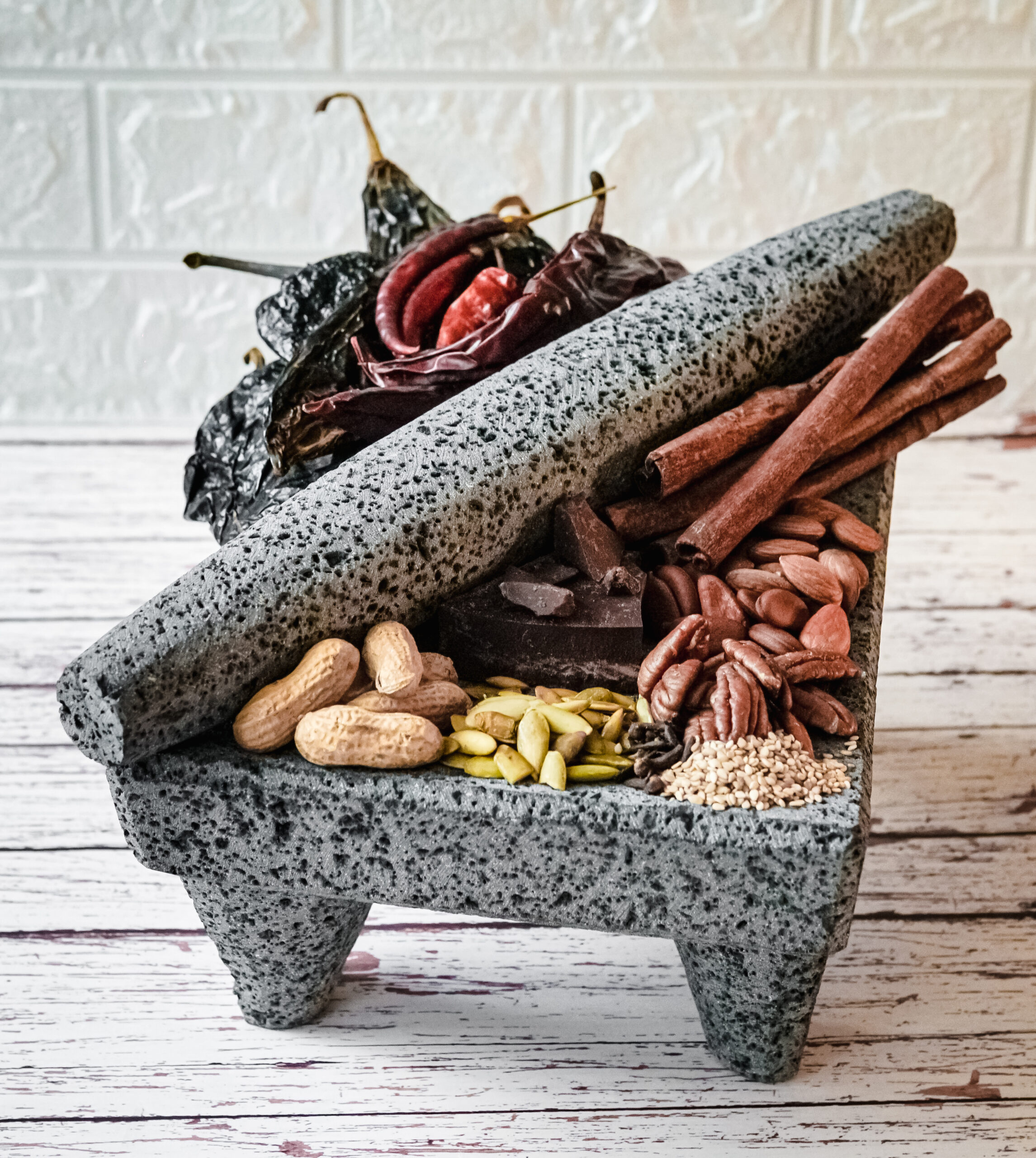 Metate chico de piedra volcánica 27×22 cm incluye meclapil.