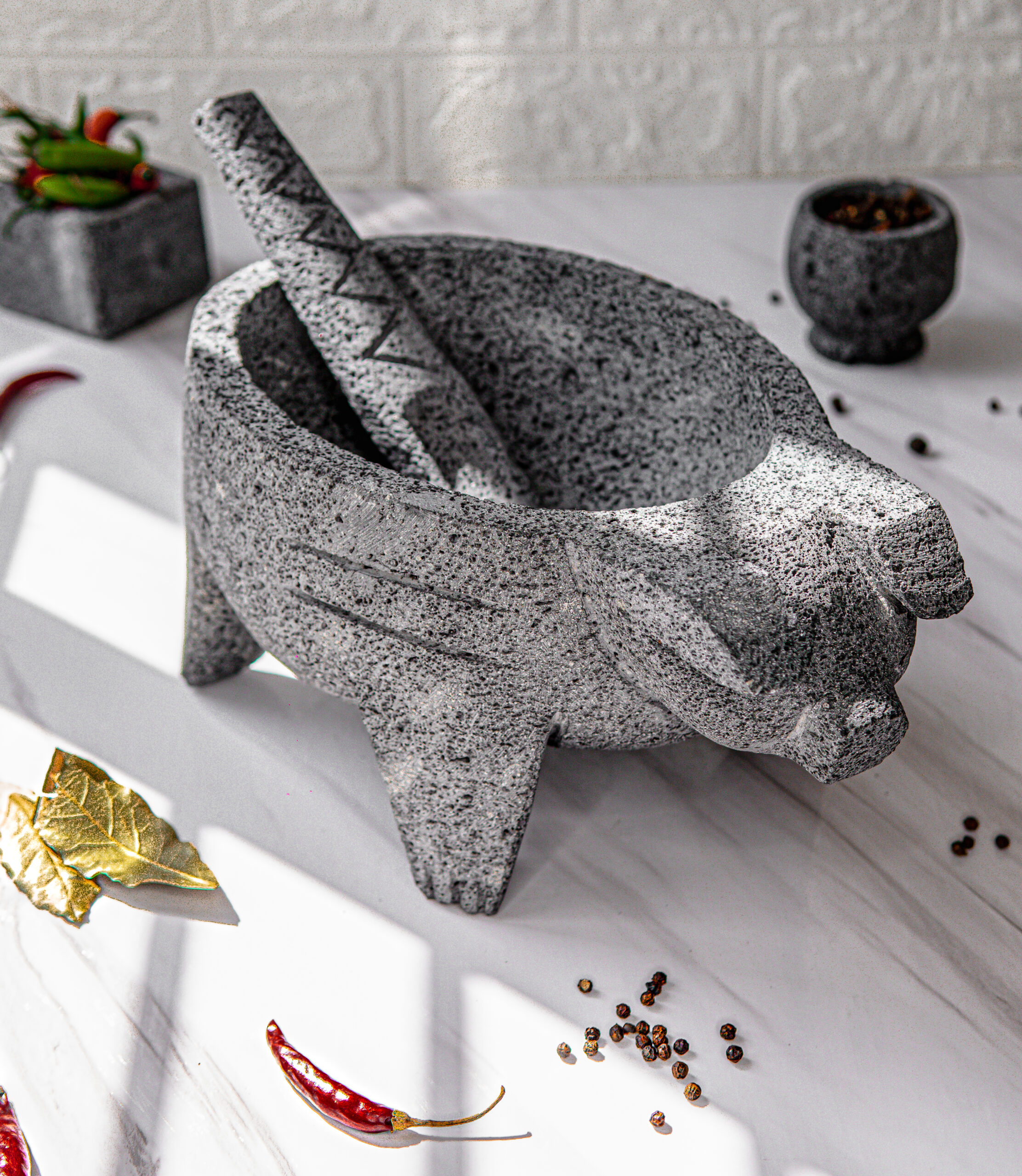 Molcajete de piedra volcánica medidas, 22x19x14 cm.