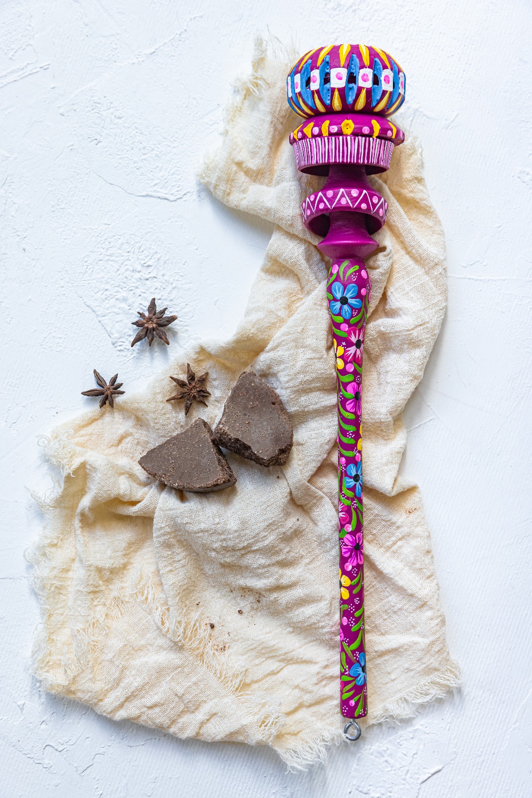 Molinillo para chocolate decorado pintado a mano