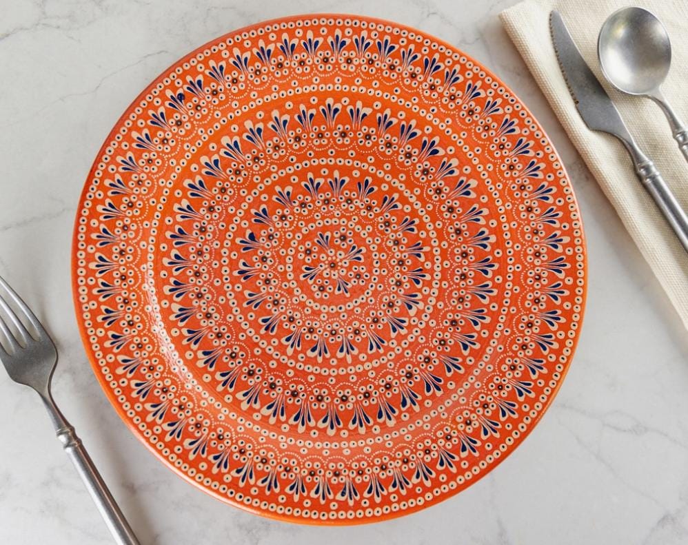 Plato base de barro capuleado modelo capulín, libre de plomo medida 29 cm de diámetro.