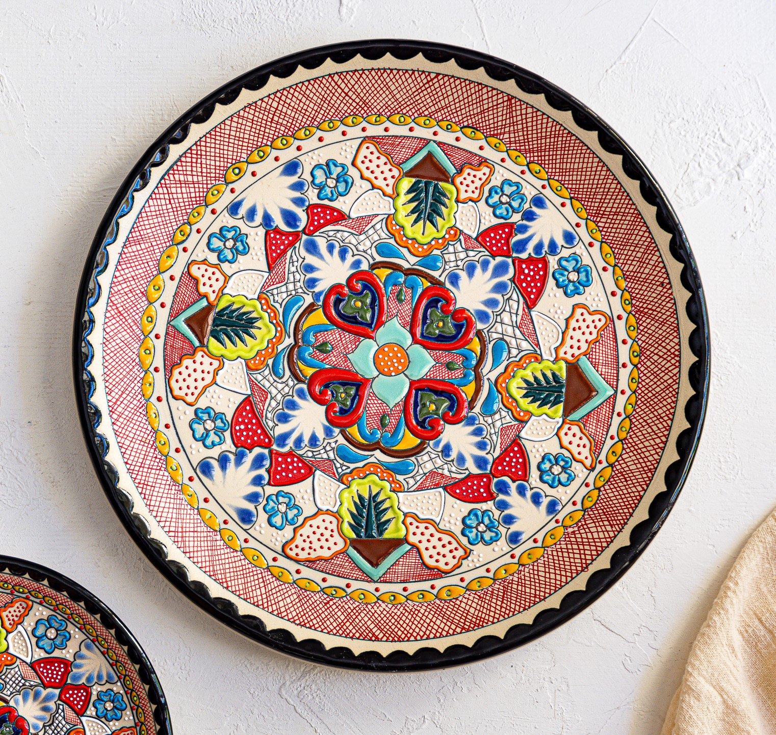 Trinche redondo de cerámica koolonial pintada a mano modelo Potosí (decorado noelia esmalte base) medida 26 cm.