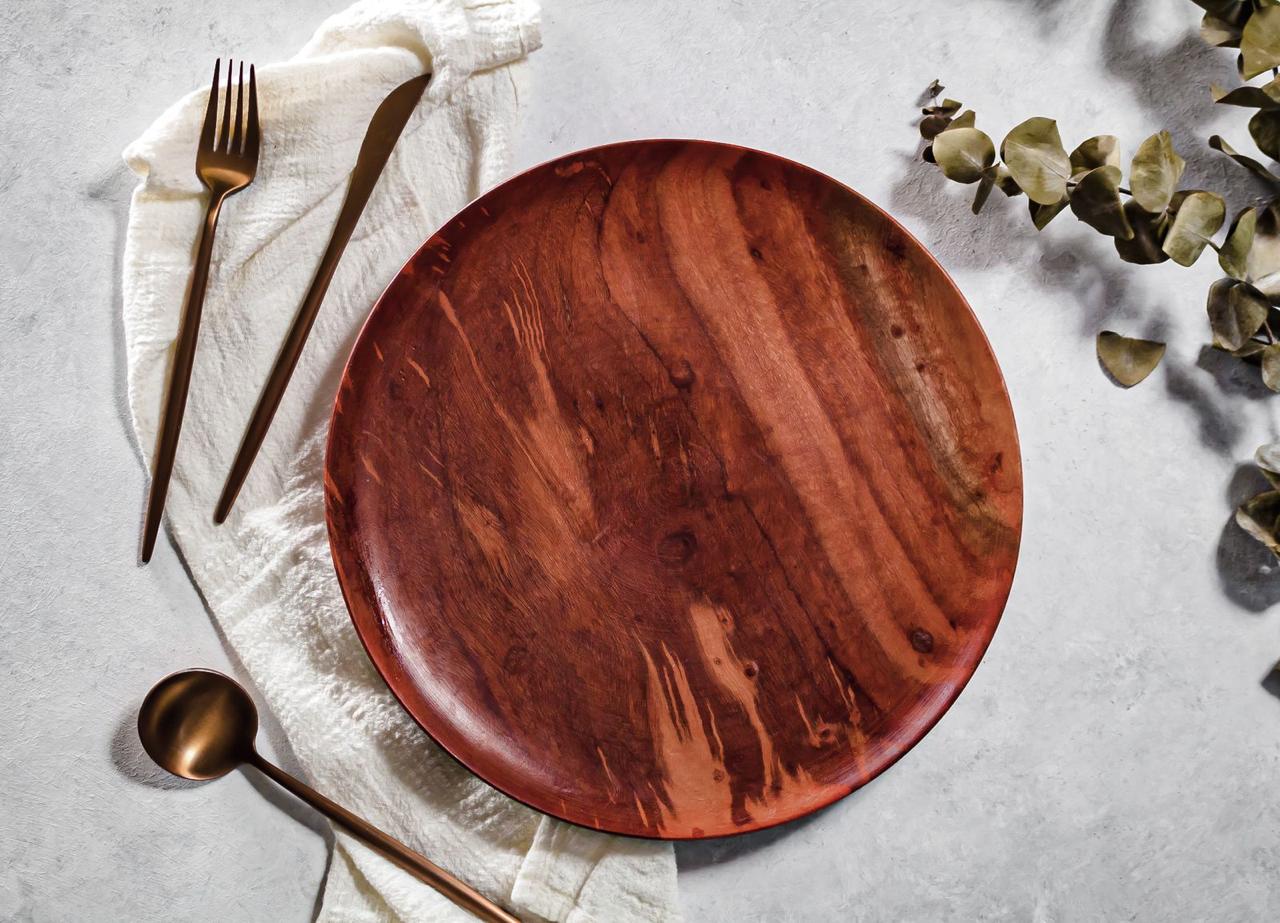 Plato trinche de madera de guamúchil, 25 cm de diámetro.
