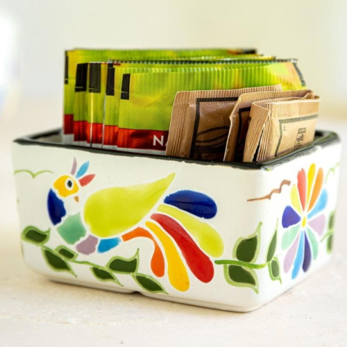 Porta sobres de cerámica alta temperatura decorado noelia, medida 10x7x5 cm.