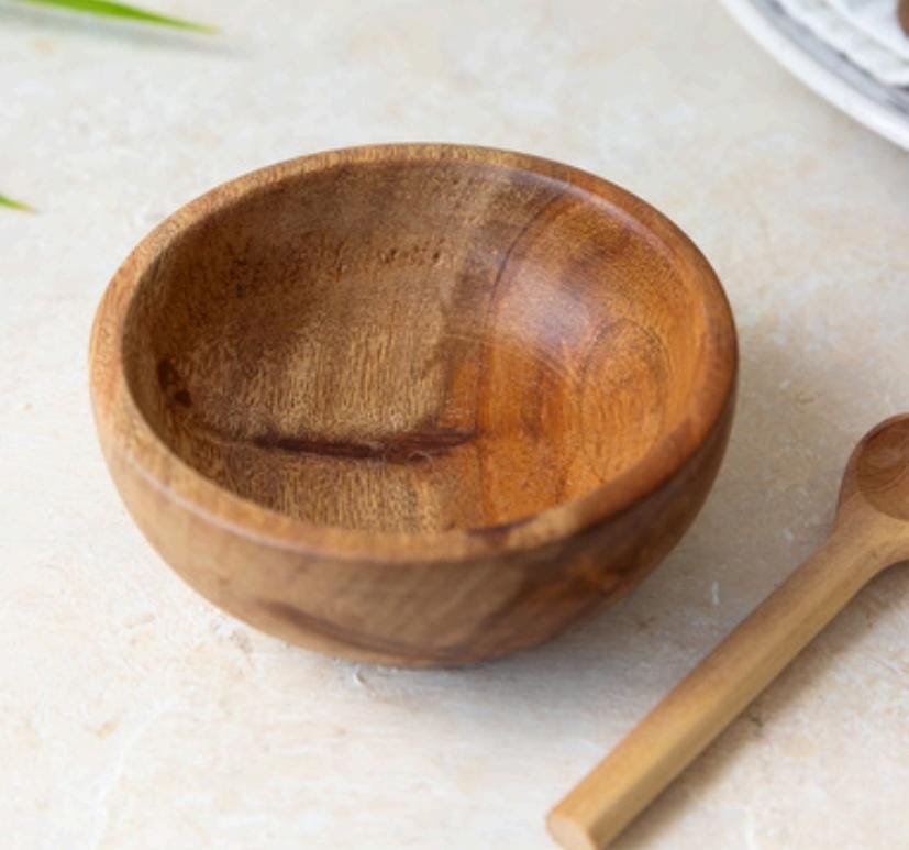 Salserita tipo bowl de madera de guamúchil medida 10 cm de diámetro por 4 de altura