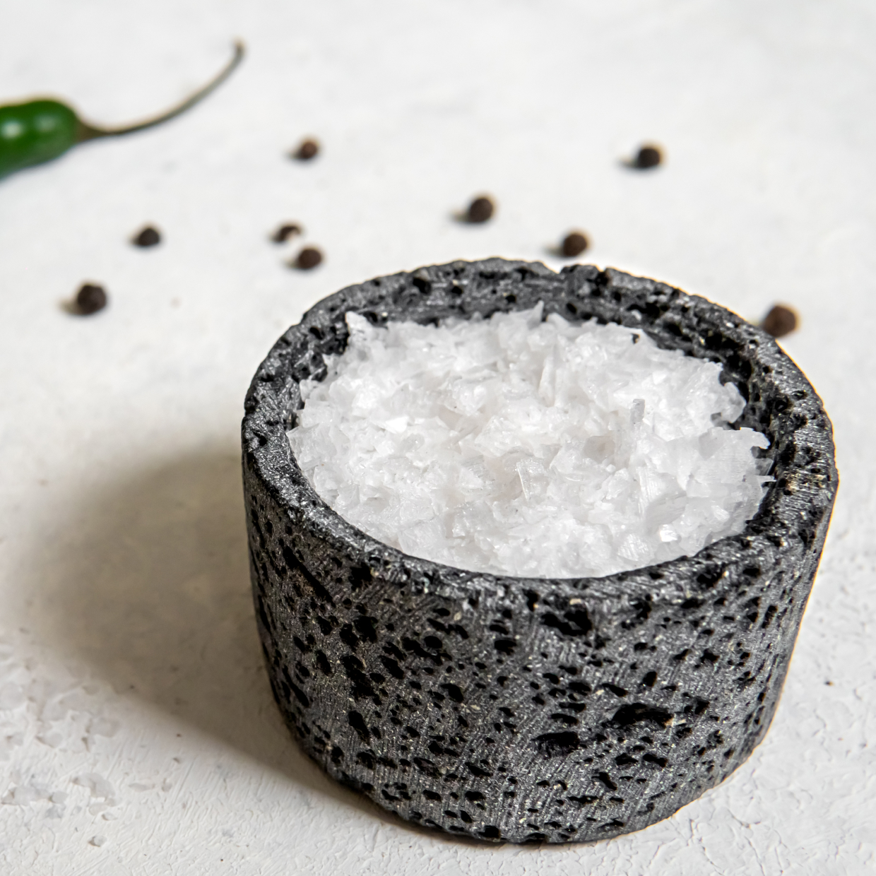Salsera de piedra volcánica en forma cilíndrica medida 6×6 cm