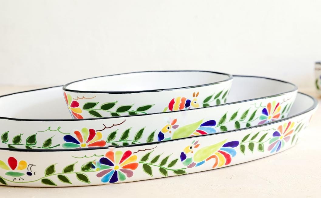 Sardinera de cerámica alta temperatura pintada a mano, modelo tenangos, medida 20x12x4 cm.