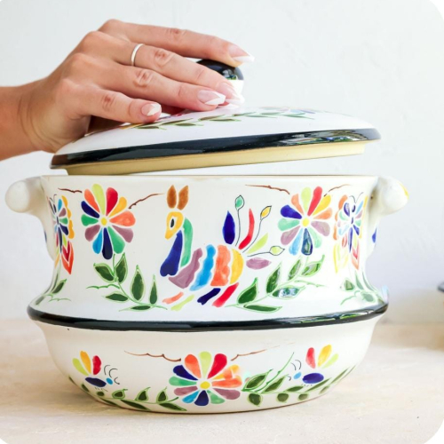 Sopera de cerámica alta temperatura pintada a mano, modelo tenangos capacidad 2.5 lts.