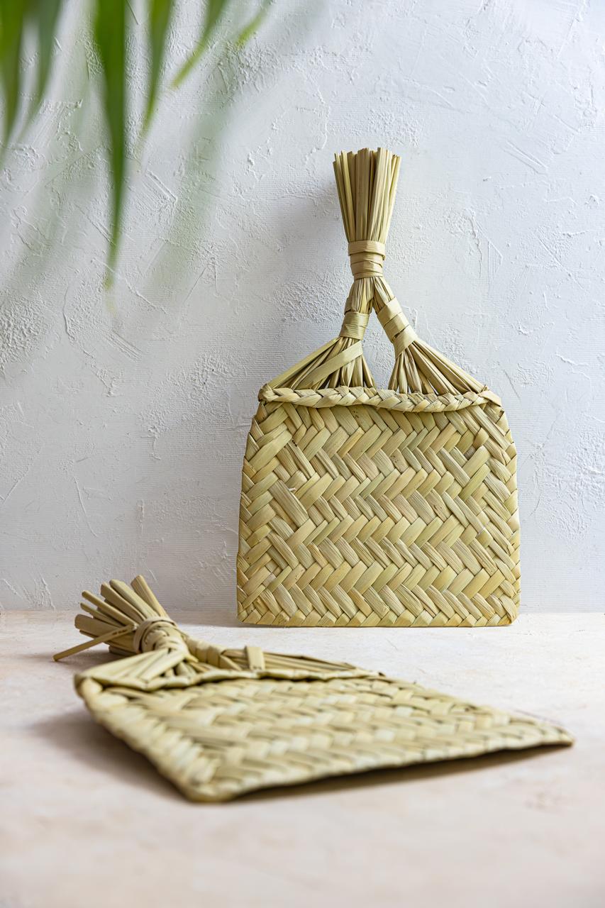 Soplador tejido a mano en fibra natural chuspata, medida 30×40 cm.