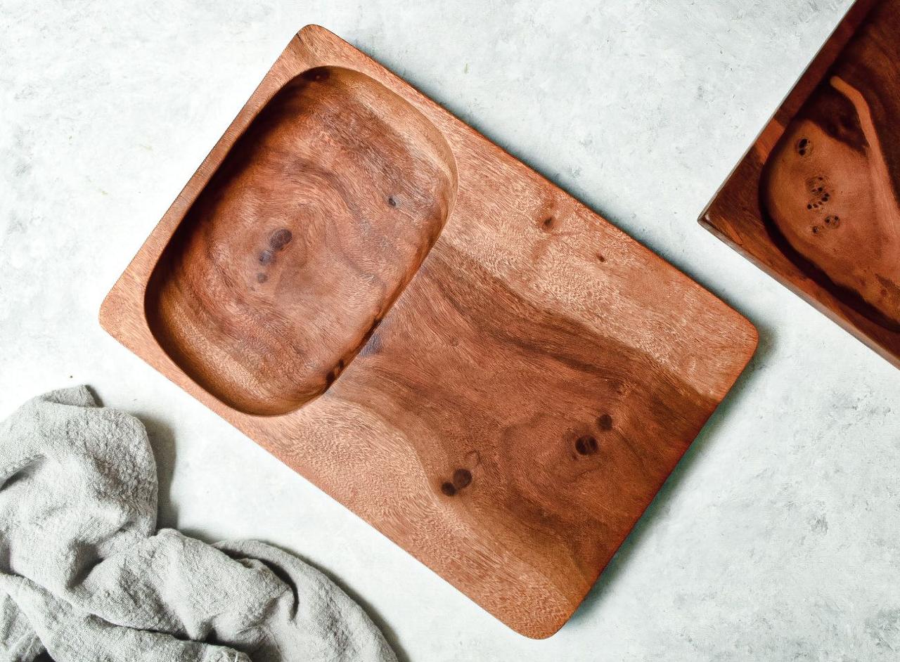 Tabla de madera de guamúchil con rebaje 25 cm.