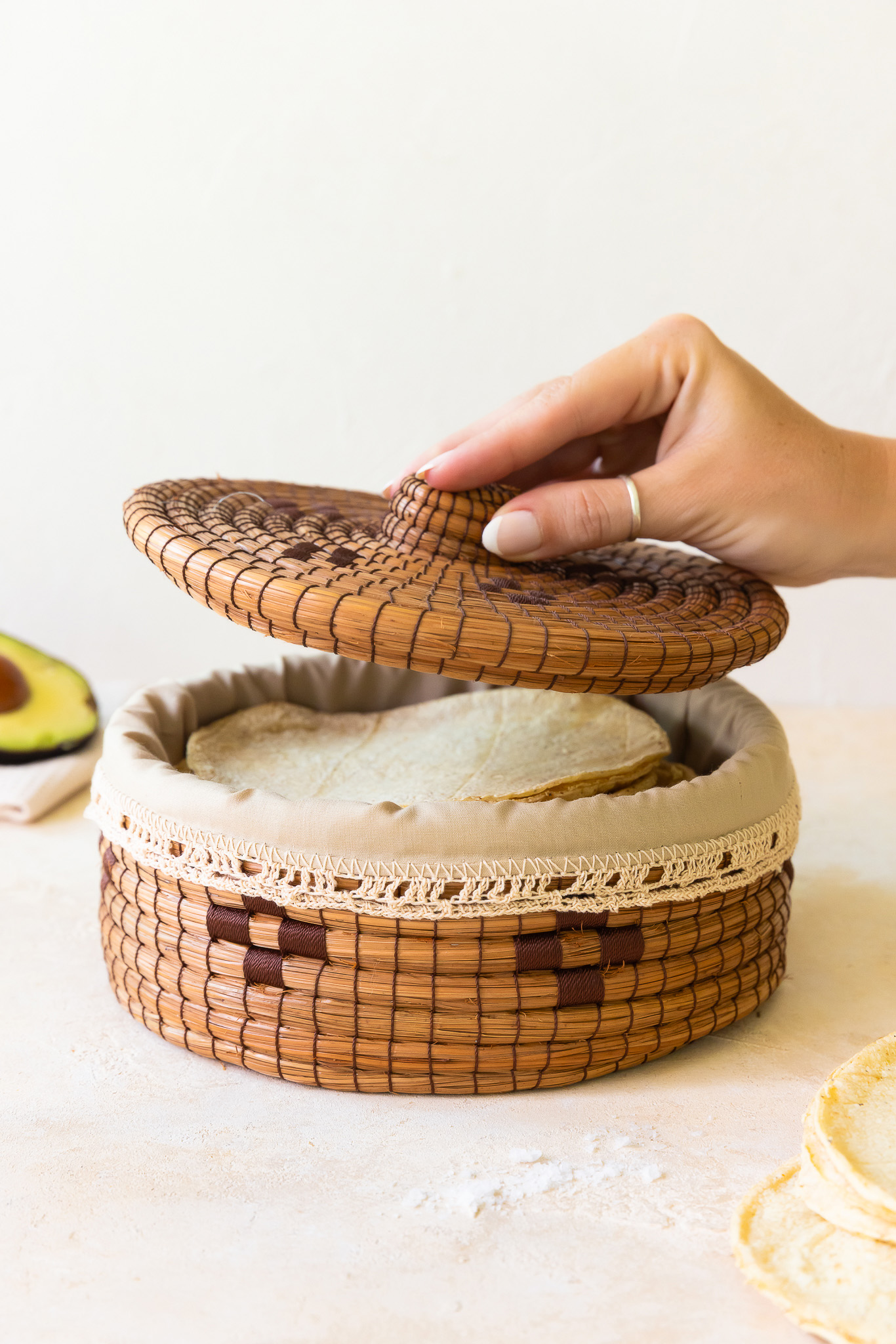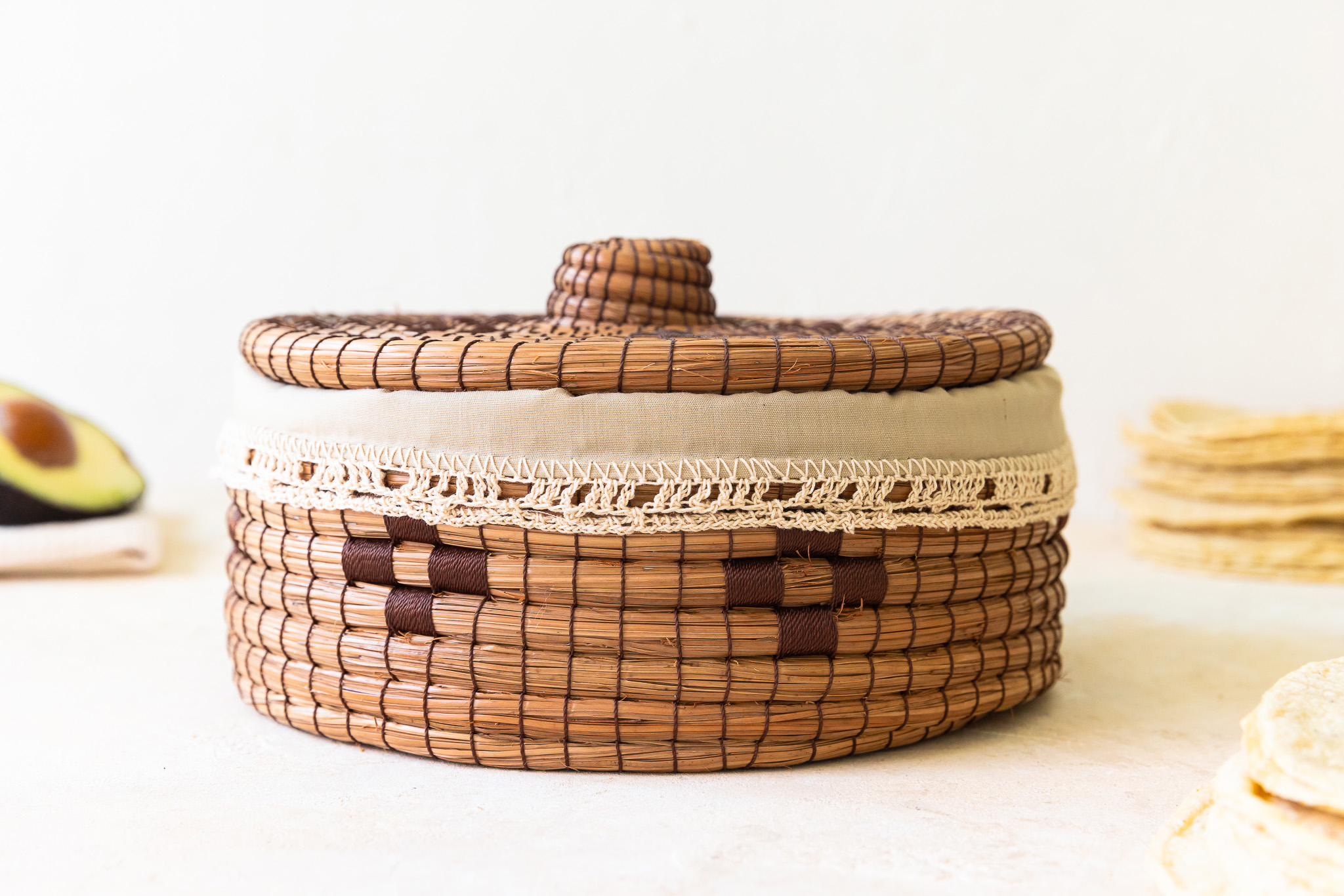 Tortillero tejido a mano con acícula de pino (ocoxal) detalle en cruz con hilo, con o sin funda, medida 20 cm.